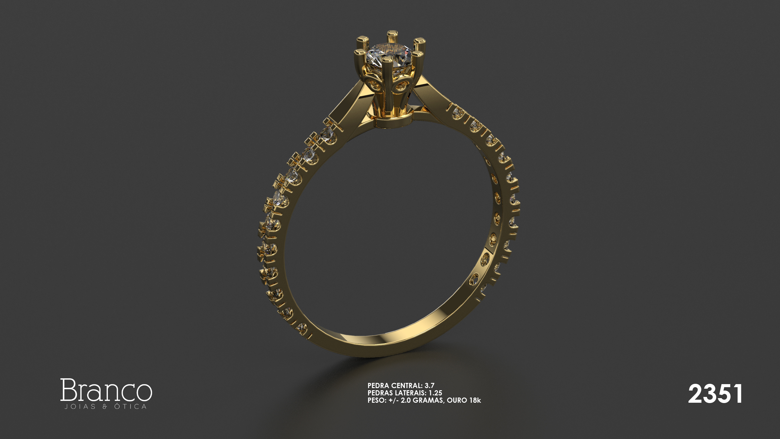 Anel Solitário com pedras laterais de 1.25mm e pedra central de 3.7mm.