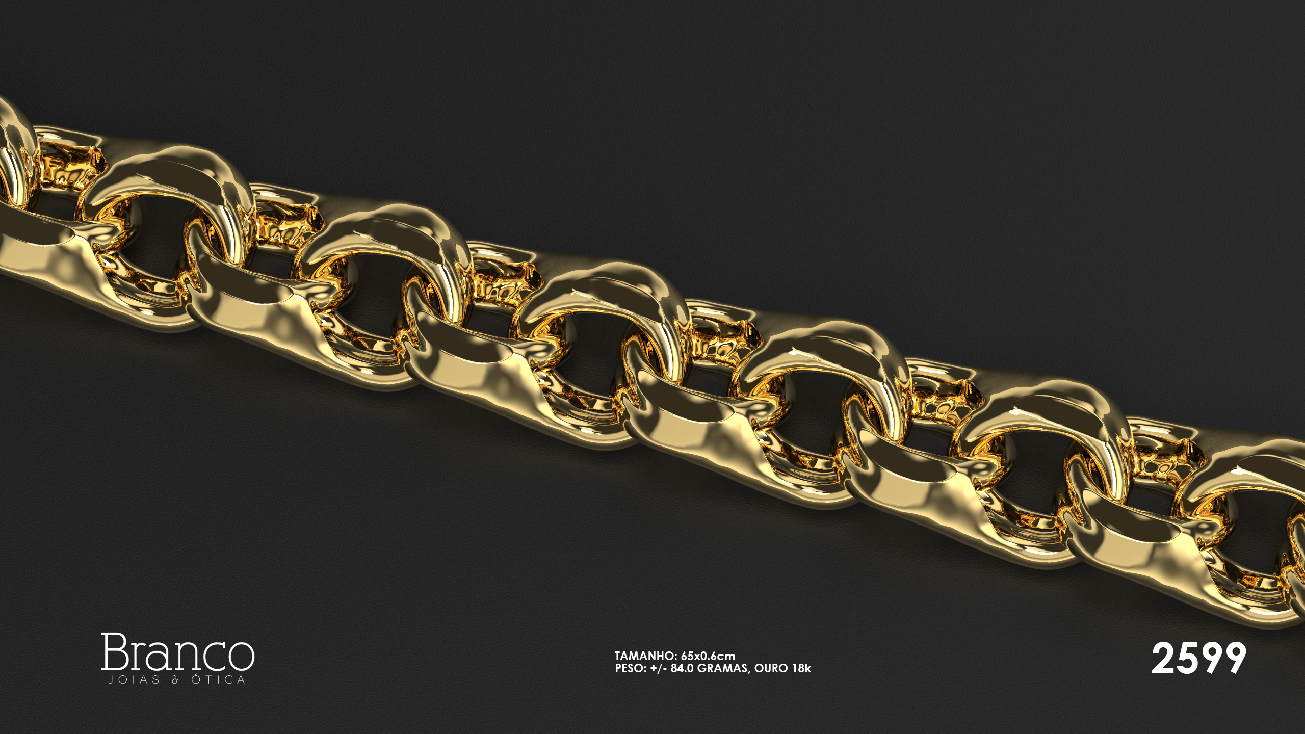 Peso: 84.0 gramas em ouro 18k.